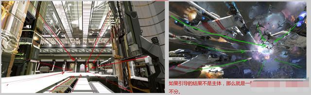 4,視覺引導(dǎo):通常我們會(huì)在作品中,利用透視、物體的擺放方向、光影的走向等來繪制作品的指引關(guān)系它能夠很好的引導(dǎo)觀眾去了解作為作者所要交代的目的。(上圖)